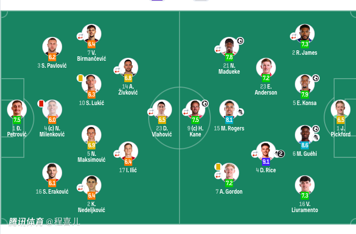 塞尔维亚首发:1-佩特洛维奇、16-埃拉科维奇、4-米伦科维奇、3-帕夫洛维奇、2-内德伊科维奇。