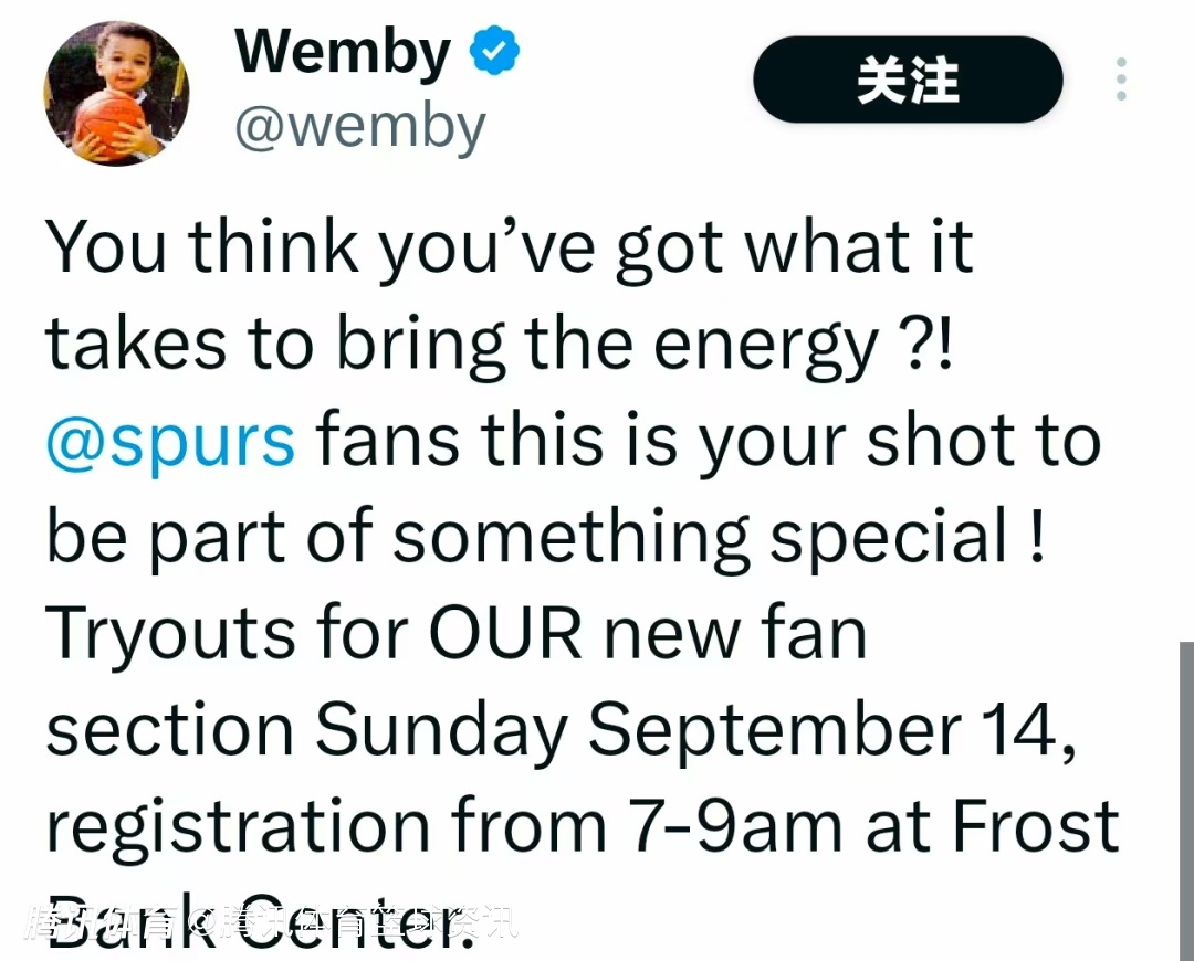 2025-09-10 10:10北京时间9月10日,马刺队官方近日正式宣布,计划打造一支全新的“球迷方阵”,球迷选拔活动定于当地时间周日举行。