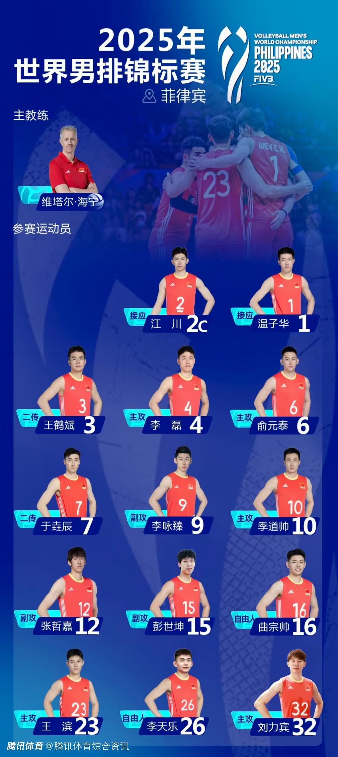 2025-09-11 09:00北京时间9月11日,中国排协公布参加男排世锦赛的中国队14人名单,张景胤未能赶上,李磊和刘力宾入选。