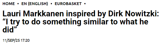 当被问及是否受到诺维茨基的启发时,马尔卡宁回应道:“我和他聊过几次,他是个很棒的人,也是一位伟大的球员。我只是试着做一些和他类似的事。他是历史级别的球星,所以这条道路并不容易,但我会尽我所能。”