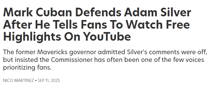 此前,萧华在NBA董事会会议上的言论曾令全联盟哗然。面对观赛价格不断上涨的问题,他将NBA称为“精彩集锦联盟”,并建议无力购买直播套餐的球迷通过YouTube和TikTok观看赛事高光集锦,这一表态随即引发争议。 库班表示:“萧华这次确实说错了。但我可以告诉你,除非过去20个月发生了巨大变化,否则在那个球队老板会议室里,当多数老板并不站在球迷这边时,他始终是维护球迷的人之一。”