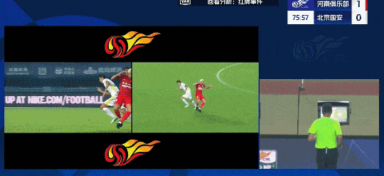 第76分钟,裁判查看VAR,王刚甩臂动作领到黄牌。