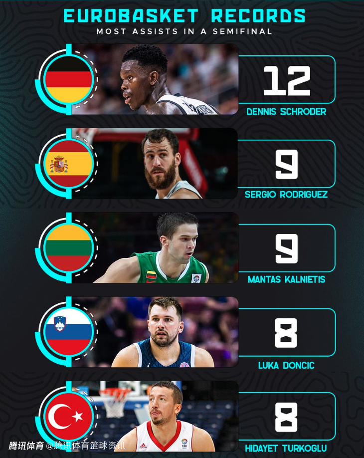 此役施罗德首发出战31分钟,15中6,三分球9中4,拿到26分5篮板12助攻。据统计,他的这12次助攻,创下了欧洲杯半决赛历史最高纪录。
