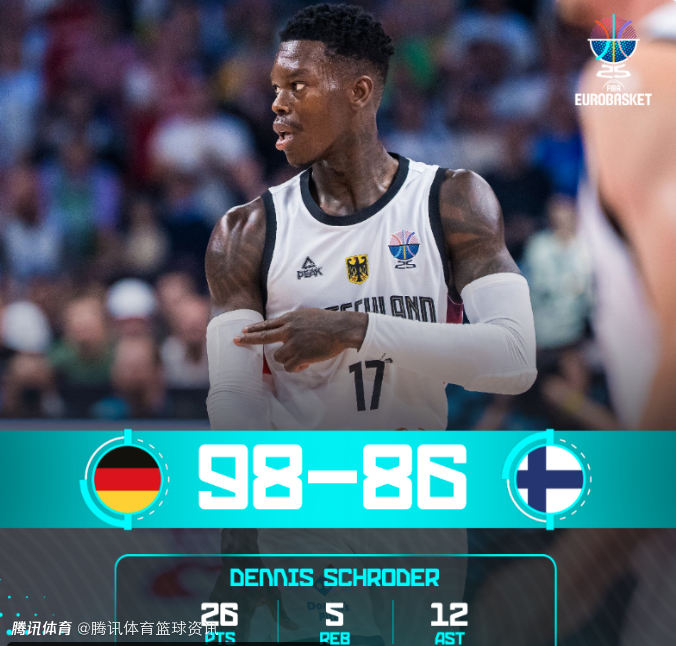 2025-09-13 00:50北京时间9月13日,男篮欧洲杯半决赛,德国以98-86击败芬兰,晋级决赛,此役施罗德发挥出色,拿到26分5篮板12助攻的全面数据单。