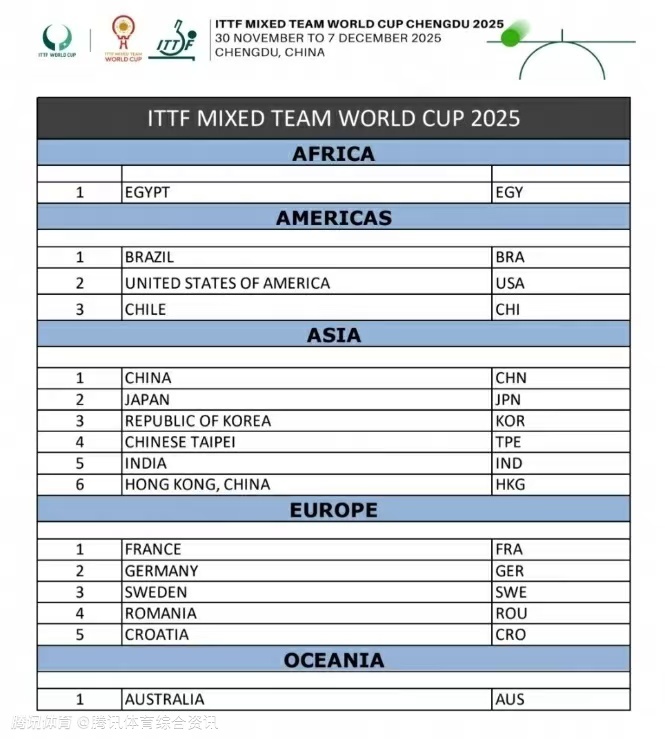 2025-09-13 13:00北京时间9月13日,国际乒联公布2025成都混合团体世界杯,获得参赛资格的队伍有:埃及、巴西、美国、智利、中国、日本、韩国、中国台北、印度、中国香港、法国、德国、瑞典、罗马尼亚、克罗地亚、澳大利亚。