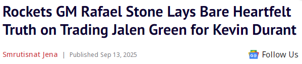 2025-09-14 05:30北京时间9月14日,火箭总经理斯通在接受采访时,谈及交易杰伦-格林并得到杜兰特的心路历程。尽管杜兰特加盟让斯通感到欣慰,但送走杰伦-格林和狄龙-布鲁克斯这样的得力干将,仍让他内心有些五味杂陈。斯通坦言,他为这两名球员取得的成就感到无比骄傲,但他也清楚,送走他们是生意的一部分,是球队为了发展必须付出的代价。