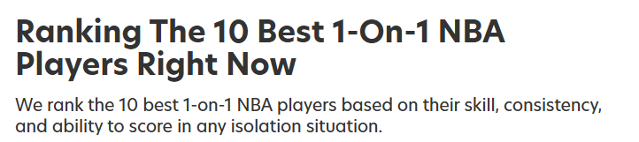 如今的哈登或许已不如巅峰时期那般爆发力十足,但他对一对一技巧的掌控力仍足以让他登上这份榜单。未来,他甚至有可能用实力证明我们的预判错误,实现排名攀升。