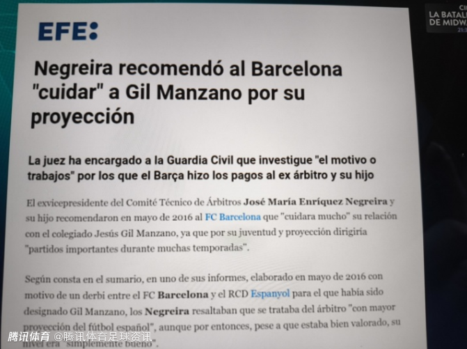同时在赛后,皇马官方电视台直接贴出了此前内格雷拉案的一份法庭报告,指出了本场主裁曼萨诺的问题。