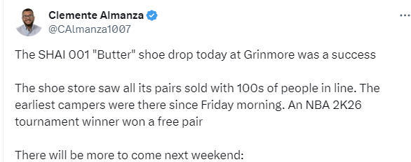 对于那些未能到场或是未能买到球鞋的球迷,预计下周末还会有更多亚历山大的签名鞋被运往俄克拉荷马城发售。
