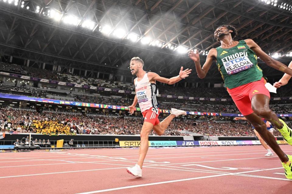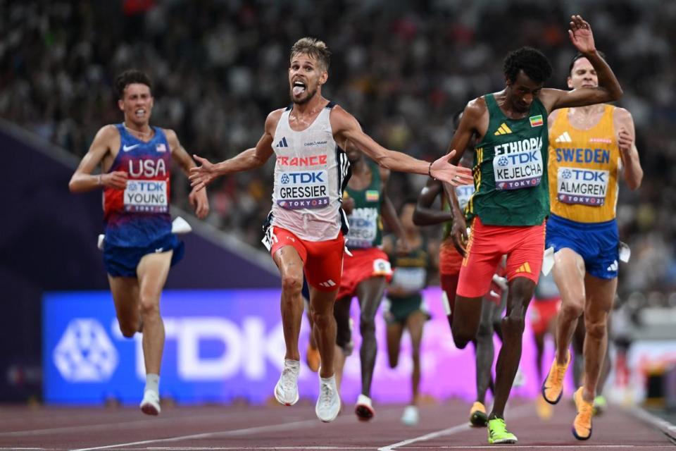 男子10000米决赛,法国选手格雷西耶在临近终点前时刻强势冲刺,连续超越瑞典的阿尔姆格伦、埃塞俄比亚的克耶尔查,以28分55秒77的成绩夺得金牌。埃塞俄比亚的克耶尔查以28分55秒83获得银牌,瑞典选手阿尔姆格伦以28分56秒02获得铜牌。