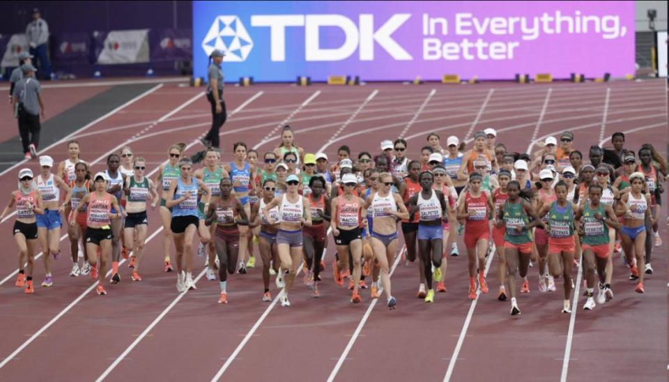 今天早上的女子马拉松比赛,肯尼亚的杰普切切最后100米加速反超,以2小时24分43秒夺得冠军,埃塞俄比亚的阿瑟法以2小时24分45秒屈居亚军。乌拉圭的朱莉娅-帕特南以2小时27分23秒获得铜牌,美国的苏珊娜-沙利文以2小时28分17秒获得第四。非常有意思的是,赛后日媒报道说美国的苏珊娜-沙利文赛后以杰普切切比赛中在违规区域取水为由对其投诉,希望取消其冠军成绩从而自己能替补上领奖台,但世界田联经过调查驳回了美国人的投诉。