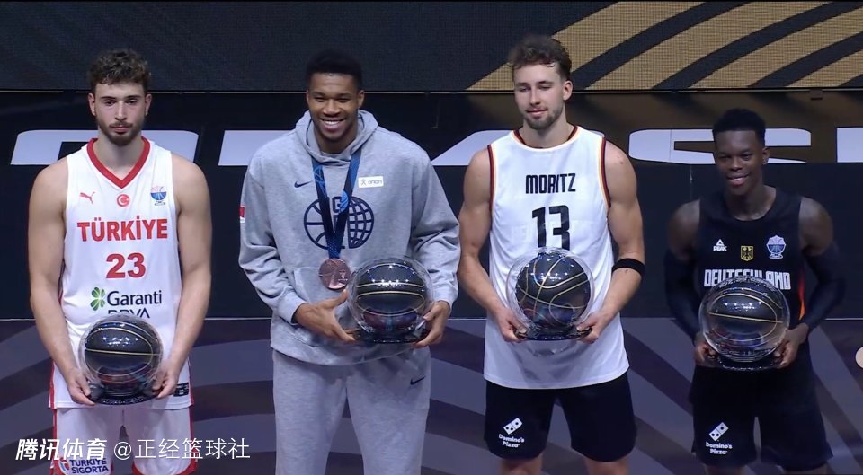 随后赛事评选出了本届赛事的最佳阵容,分别是:字母哥(希腊队),施罗德(德国队),申京(土耳其队)、小瓦格纳(德国队),东契奇(斯洛文尼亚队)。其中,施罗德和小瓦格纳夺得冠军,申京拿到亚军,字母哥夺得季军,东契奇未进四强。