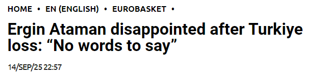 2025-09-15 06:30北京时间9月15日,在2025年男篮欧洲杯决赛中83-88憾负德国后,阿塔曼并不愿为带领土耳其队夺得队史第二枚欧洲杯银牌一事,提及任何积极意义。