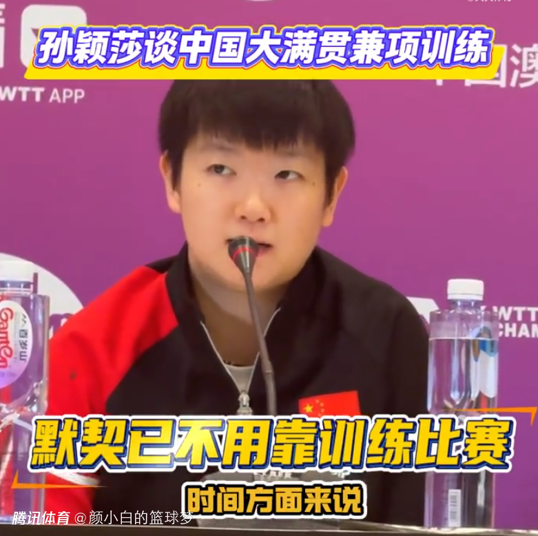 赛后在新闻发布会上记者询问,下个月的北京大满贯,孙颖莎与王楚钦要再度合作混双,孙颖莎说道:从世锦赛到中国大满贯,我们可能有小半年时间没有配合过,但是对于我们两个来说默契不是要每天训练才能达成。兼项对于我们来说比较熟悉,就算我们以单人的这种能力去打,即使不训练整体实力也是很强的。