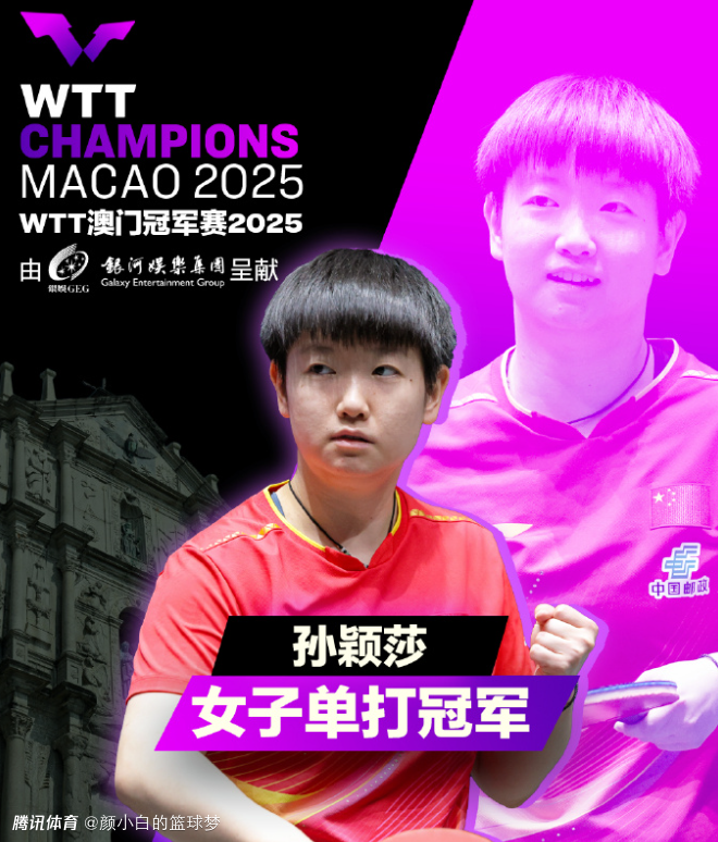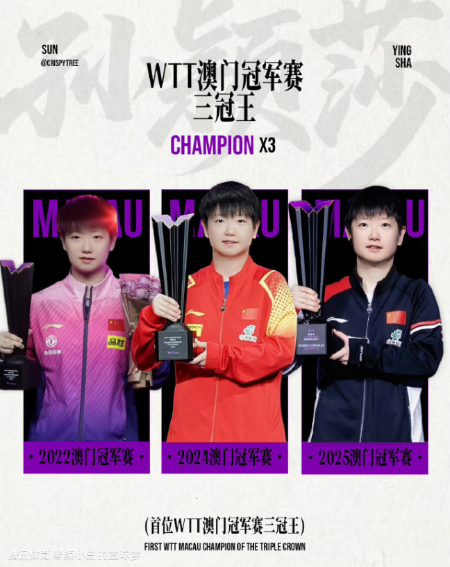孙颖莎也成为WTT澳门冠军赛历史上首位三冠王:2022年、2024年、2025年,孙颖莎的统治力可见一斑。