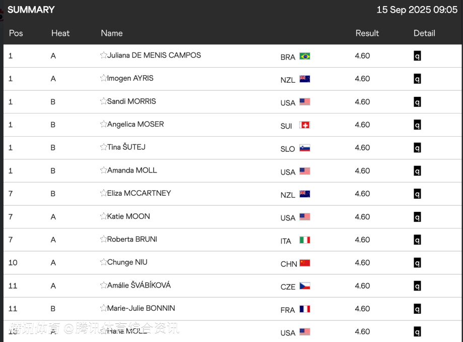 2025-09-15 10:40北京时间9月15日,在东京进行的田径世锦赛结束了女子撑杆跳预赛,中国选手牛春格以4米60的成绩成功晋级决赛!