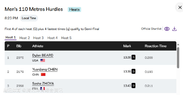 男子110米栏的半决赛将在明晚进行。
