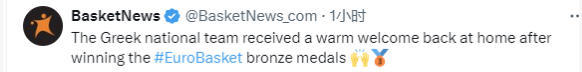 载誉而归!希腊男篮摘铜牌后回国 受到媒体和球迷热烈欢迎