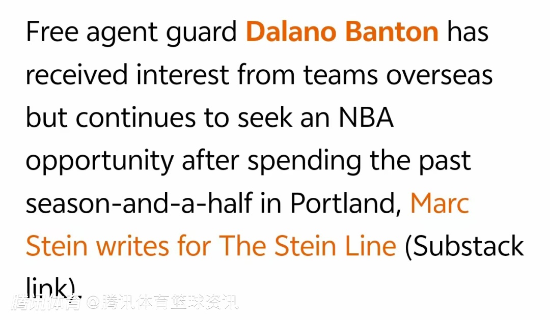 2025-09-16 08:30北京时间9月16日,名记Marc Stein在其专栏中报道,自由球员后卫班顿虽已收到海外球队的兴趣,但在波特兰度过一个半赛季后,他仍在继续寻求NBA赛场的机会。