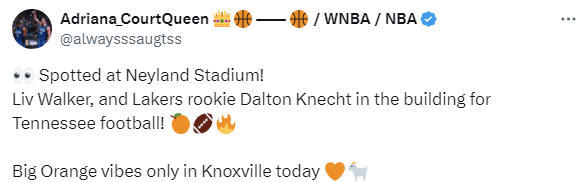 2025-09-16 09:30北京时间9月16日,湖人队球员克内克特与女友一起返回母校田纳西大学,观看该校的橄榄球比赛。