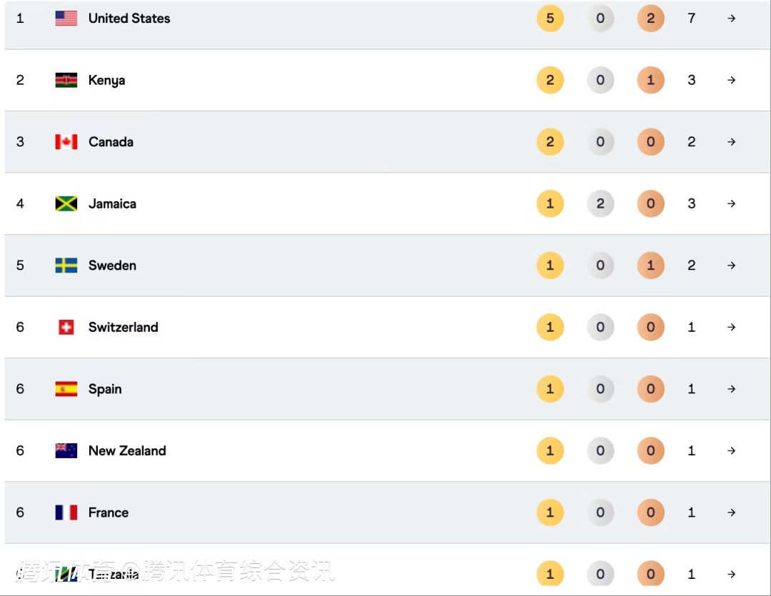 2025-09-16 10:00北京时间9月16日,世界田联官方公布东京世锦赛第三比赛日后奖牌榜,排名前三的美国获得5金2铜,肯尼亚获得2金1铜,加拿大获得2金,截至目前共有10个代表团获得了金牌。中国队目前获得1银1铜,排在奖牌榜第15位。
