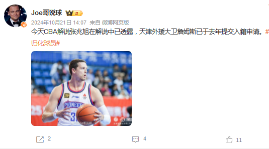 这名CBA詹姆斯从去年开始就传出归化的绯闻,其中,天津名宿张兆旭更是透露过中国篮协一度和他产生接触更加进一步印证了双方有意合作的可能性。