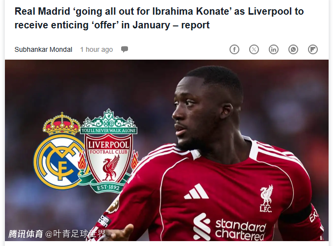 E-Noticies表示,在伤病阴影下,皇马希望明年1月就引进科纳特,报价4000万欧元。这是能打动利物浦的价格——否则半年之后,科纳特0转会费离开,利物浦损失更大。
