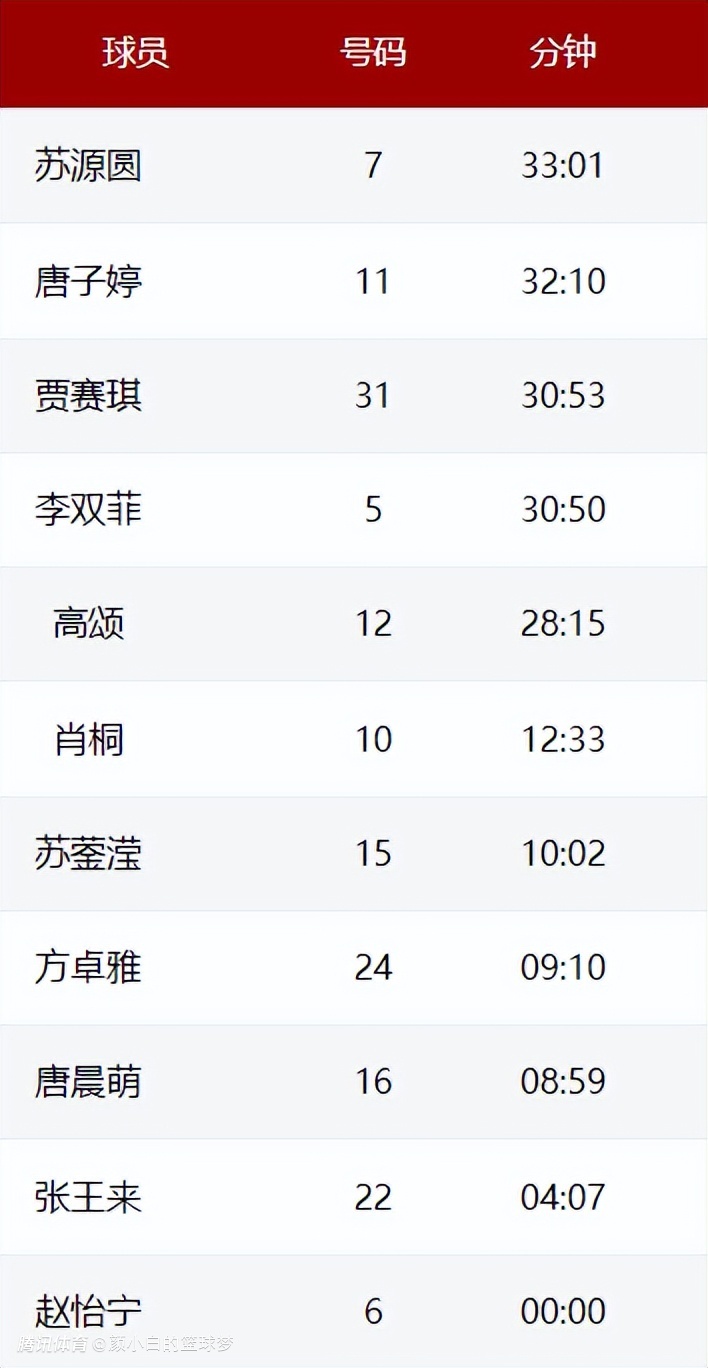 第一阶段的四场比赛四川队的11人大名单:5-李双菲,6-赵怡宁,7-苏源圆,10-肖桐,11-唐子婷,12-高颂,15-苏蓥滢,16-唐晨萌,22-张王来,24-方卓雅,31-贾赛琪;(连12人都没有带齐)