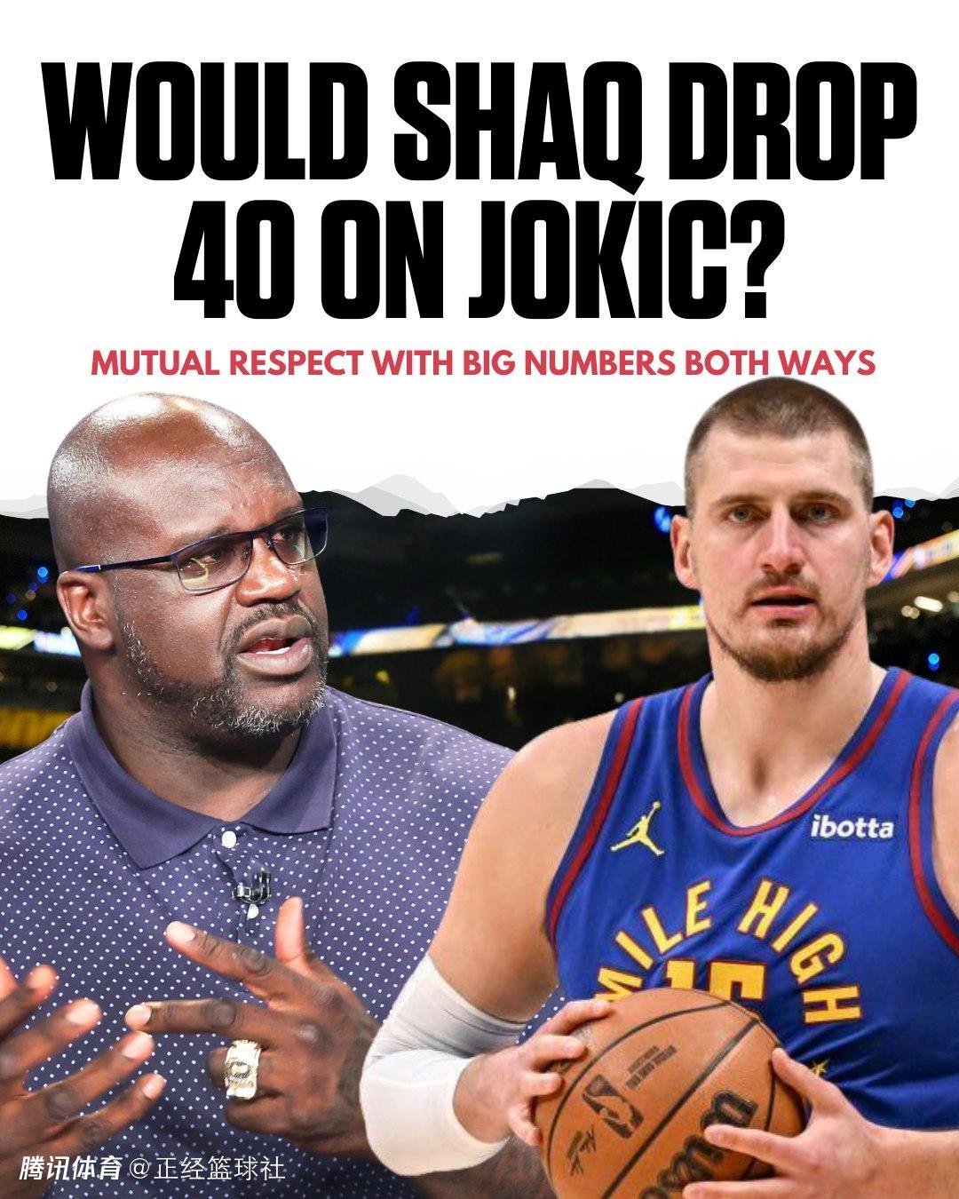 随后奥尼尔继续说道:“然而,如果他要一对一防守我,我感觉他不会在场上待太久,因为在前10个回合里,我会不断攻击他。他要么犯规,要么需要队友来包夹我,他会因为对我犯规太多而下场休息了。所以他可能会得27到30分,因为他是一个出色的射手。如果他是一个专注于内线的球员,那我只需要专注于他,他就不会得到那么多分。因为我看到他在低位对抗那一年的霍华德(2020年季后赛)时遇到了麻烦。由于掘金队经常打挡拆,你必须去协防后卫,然后他们会把球回传给他,让他投篮。但如果他防守我?我可以轻松场均40分。”