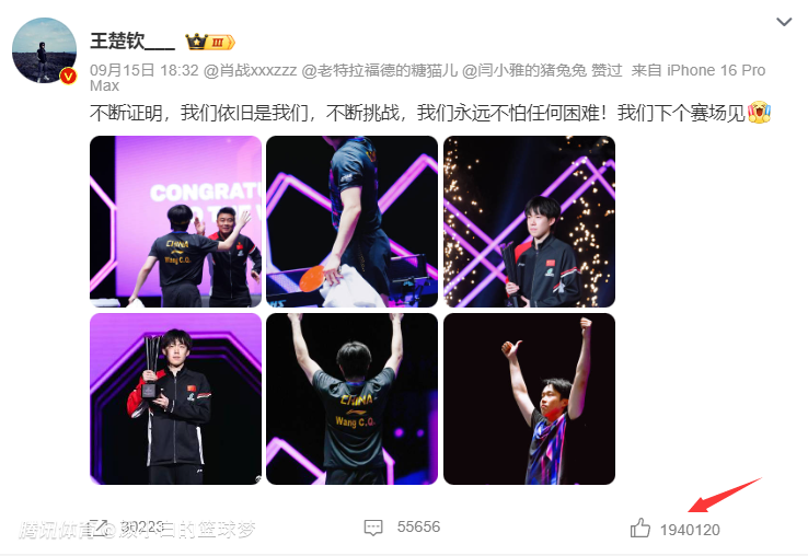 2025-09-18 10:30王楚钦在9月15日发布了一条推文:不断证明,我们依旧是我们,不断挑战,我们永远不怕任何困难!我们下个赛场见。这条推文在72小时不到的时间里获得了194万点赞,这就是王楚钦的人气与影响力吗?
