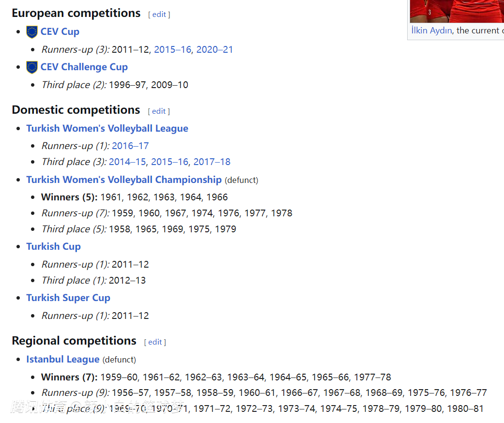 加拉塔萨雷女排是土超豪门,建队是在1922年,这支球队经历了沧桑变迁改过多次名字,但她们一直都是土耳其超级杯、土耳其杯、土耳其联赛、伊斯坦布尔联盟的豪门球队,队史获得的荣誉无数,上赛季常规赛排名第四,锦标赛排名第五。