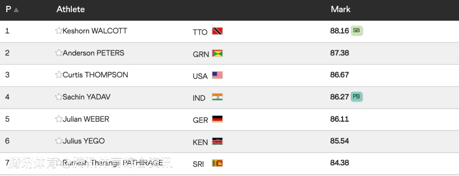 男子标枪决赛:沃尔科特刷新赛季最佳获金牌 时隔13年再夺世界大赛冠军