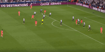 第2分钟,拉菲尼亚右路分球,费尔明左脚远射打偏。