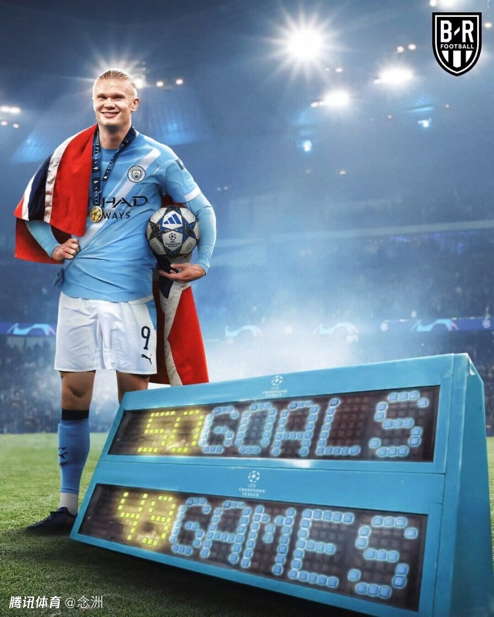 2.哈兰德欧冠49场50球,历史最快,超过62场50球的范尼和66场50球的梅西,也是欧冠历史上第10位50球先生,其中萨尔茨堡8球,多特15球,曼城27球。