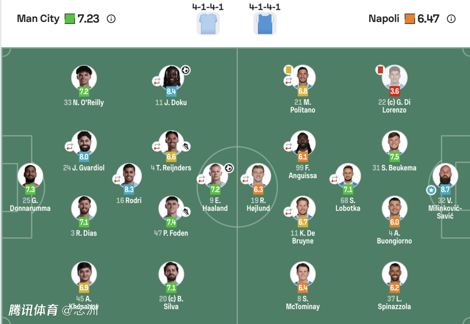 欧冠:开门红!曼城2-0十人那不勒斯,哈兰德50球里程碑+造红牌