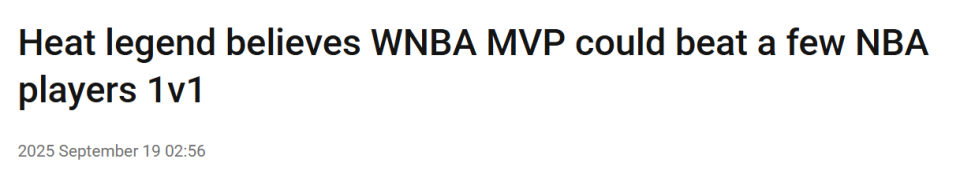 2025-09-19 09:50北京时间9月19日,多年来,关于WNBA球员能否在一对一单挑中击败NBA球员的争论一直存在。尽管许多人认为,女球员甚至无法与任何级别的NBA或低级别联赛男球员竞争,但名人堂成员韦德表示,他认为三届WNBA最有价值球员阿贾-威尔逊有能力在一对一单挑中击败部分NBA球员。