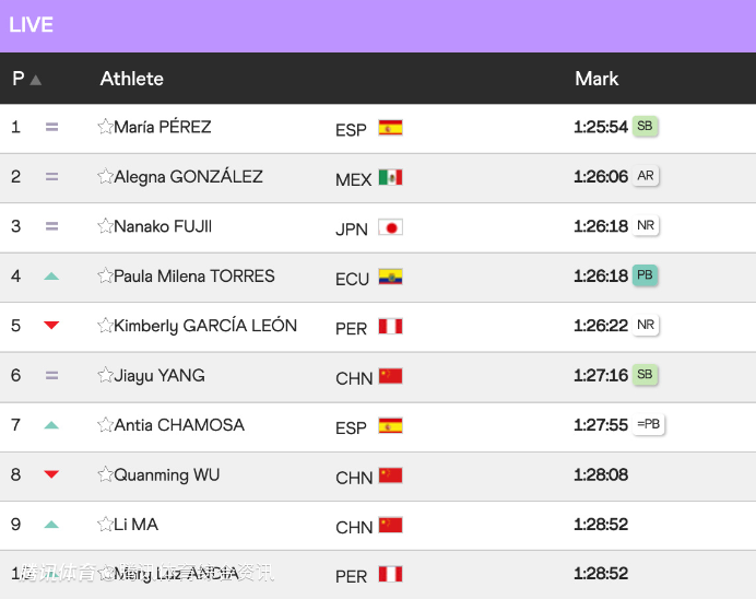 在9月13日的女子35公里竞走决赛中,佩雷斯以2小时39分01秒的成绩成功卫冕,领先亚军意大利选手帕尔米萨诺超过3分钟,展现出碾压级实力。