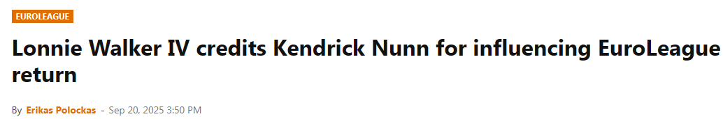 在接受采访时,沃克特别提到前湖人队友肯德里克-纳恩的经历,称其为推动更多美国球员加盟欧洲联赛的关键人物。“这一切的起点,离不开纳恩,他绝对是这一领域的先驱之一。是他让美国球员意识到,来到欧洲联赛打球也能拥有舒适的环境,更用实际行动证明了这件事的可行性。”