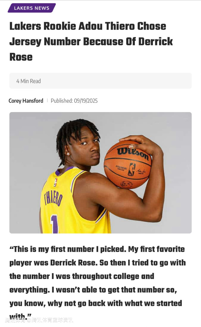 2025-09-21 10:50北京时间9月21日,湖人新秀蒂耶罗在接受采访时,谈及自己选择球队1号球衣的原因。