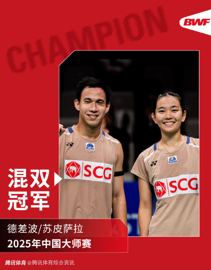 本赛季第四冠!德差波/苏皮萨拉2-0击败陈堂杰/杜依蔚 获中国大师赛混双冠军