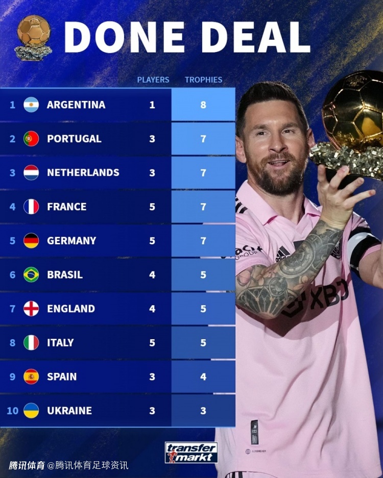 获金球奖最多国家排名:梅西一人8次撑起阿根廷 葡荷法德7次并列第二