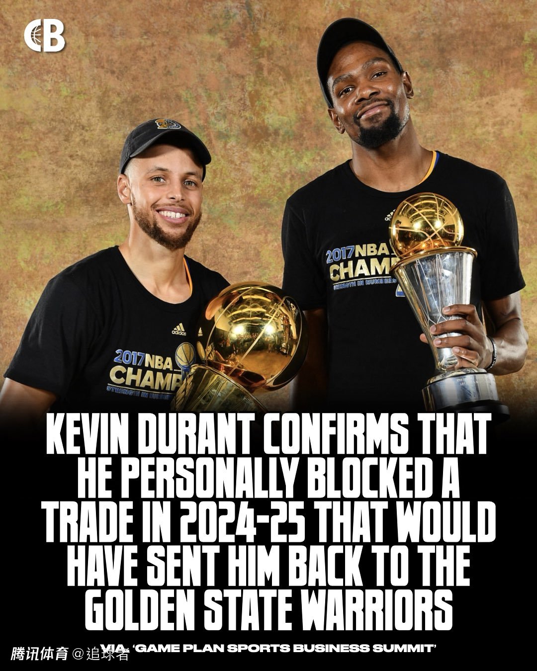 杜兰特表示:我听说勇士队曾在交易截止日前试图推动交易,这时(杜兰特的商业伙伴兼经纪人)里奇-克莱曼发挥了关键作用。我们凭借在联盟建立的人脉,再加上我曾在勇士效力的经历,我们告诉他们先别推进这笔交易。