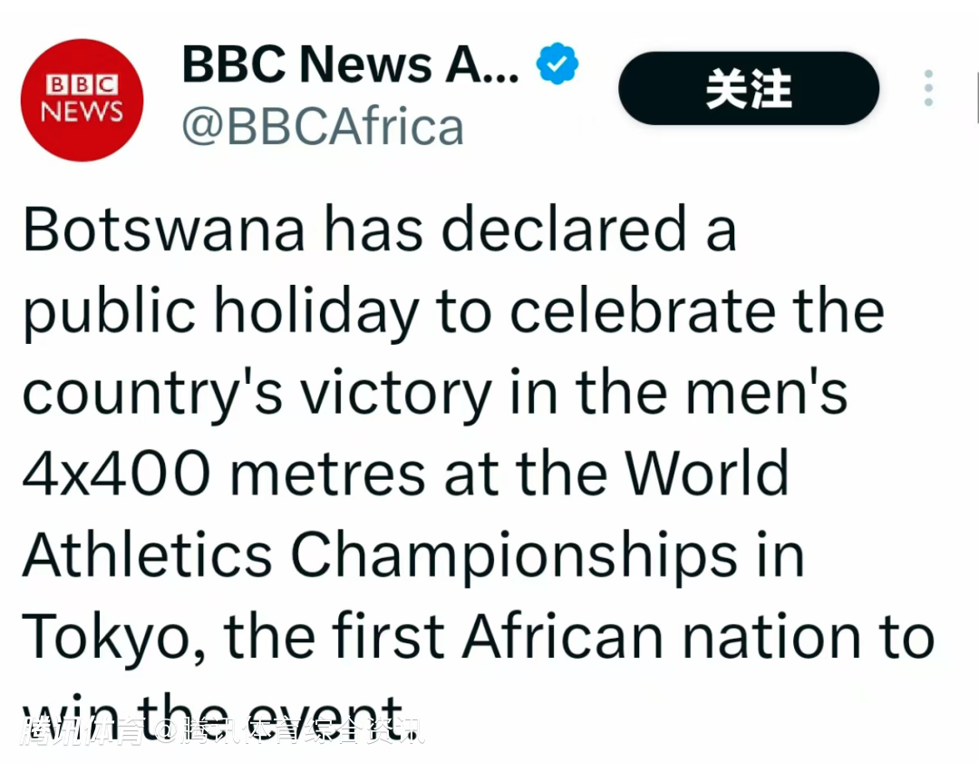 举国同庆!庆祝世锦赛4x400米夺金 博茨瓦纳宣布全国放假一天