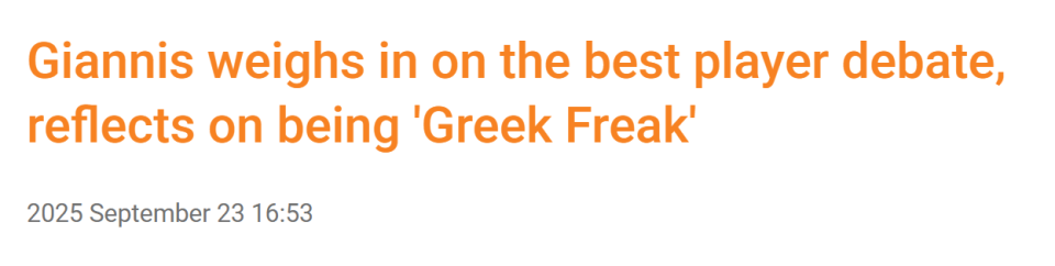 2025-09-23 17:50北京时间9月23日,雄鹿巨星字母哥接受希腊媒体Sports24采访,畅谈名气、家庭与责任,同时拒绝将“世界最佳球员”的头衔归于自己,强调比起荣誉,努力、领导力与品格才是更重要的追求。