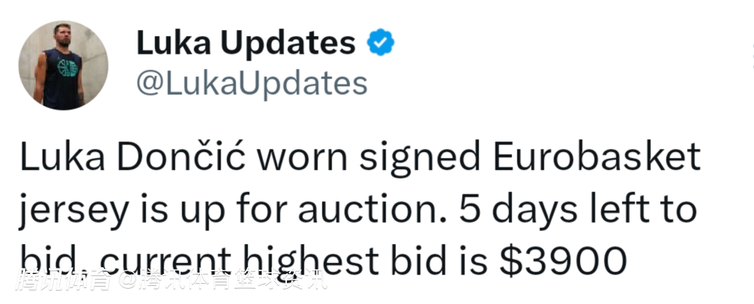 东契奇欧洲杯亲穿+签名球衣正在拍卖 目前最高出价为2.7万人民币