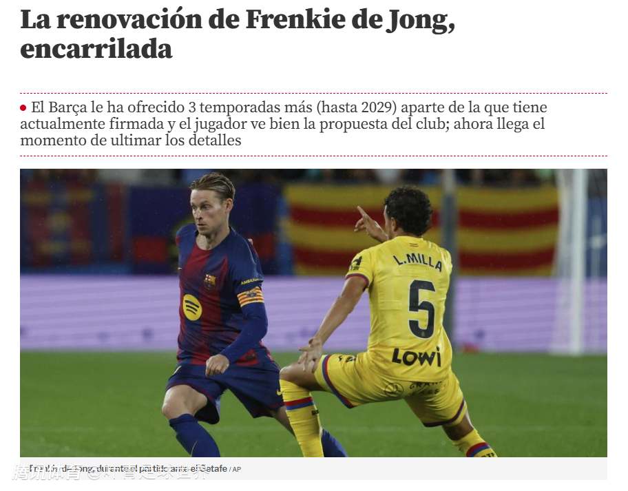 西媒:巴萨将续约德容至2029年 下赛季降薪 已基本谈妥