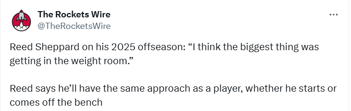 当被问到“曾是肯塔基大学球队领袖,如今在火箭戏份相对有限”这一话题时,谢泼德有着清晰的认知:“我的想法是,我或许不是最活跃、话最多的人,但我完全可以通过发声去影响队友,进而承担起领袖职责。这也是新赛季我需要学习和适应的重要一课。”