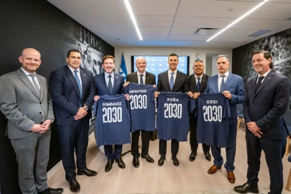 阿根廷足协主席塔皮亚向阿根廷《民族报》透露:此次讨论扩军的“纽约会议”,正是因凡蒂诺提议召开的。此外,因凡蒂诺手持背后印有“2030”及自己姓氏的球衣,与南美代表们亲切合影——这一细节,也足以说明他对扩军议题的倾向性。