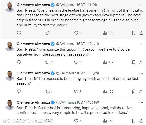 普雷斯蒂说道:“篮球运动充满人文温度,既需要临场应变,也讲究团队协作,更需持续精进,向球迷传递这项运动的本质,其实非常、非常简单。成为顶级强队的征程,并未在上赛季结束时画上句号。要想让即将到来的赛季发挥最大价值,我们必须摆脱上赛季成功带来的影响。”