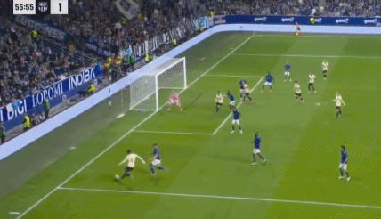 阿劳霍左路下底传中,费兰-托雷斯停球转身扫射,埃斯坎德尔将球扑了一下,击中右侧立柱,埃里克-加西亚门前补射命中,1-1!